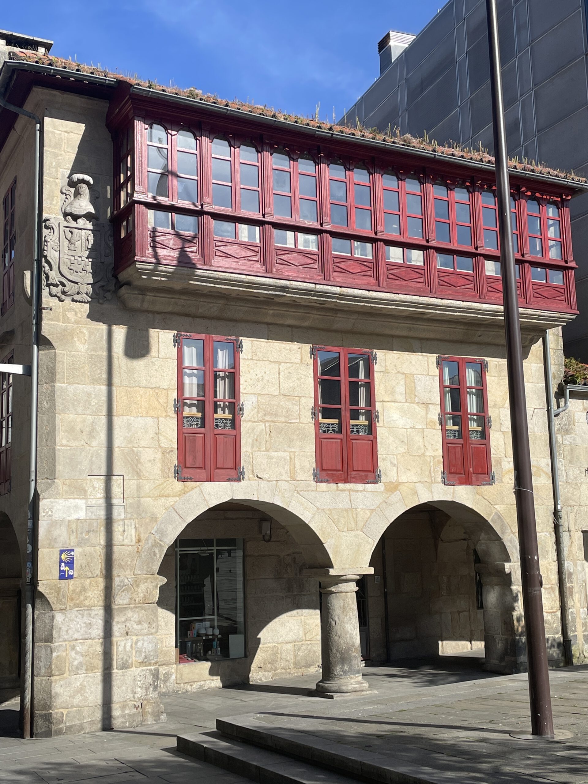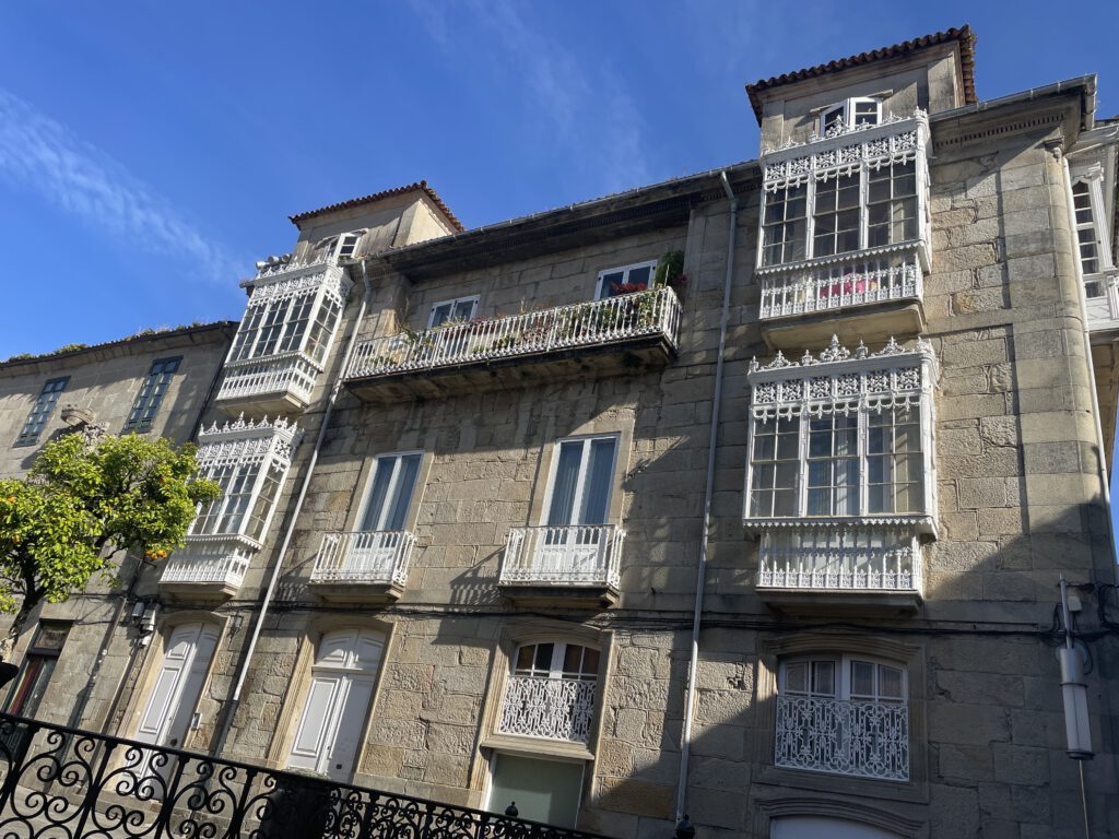 Wir begannen noch mit einer kleinen Besichtigung von Pontevedra, weil es so viel zu sehen gibt, wo wir auch in einer kleinen, schnuckeligen Bäckerei gefrühstückt haben, und dann ging es wieder weiter Richtung neuem Ziel Caldas de Reis. Die Strecke war etwa 23 km lang und war eines der schönsten Etappen bisher entlang vieler Weinberge und den folgenden Dörfern Pontecabras, O Castrado, San Amaro, A Seca,Briallos, Valsordo und Caldas de Reis.