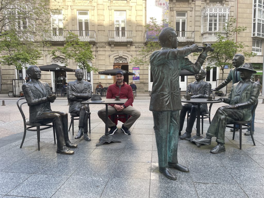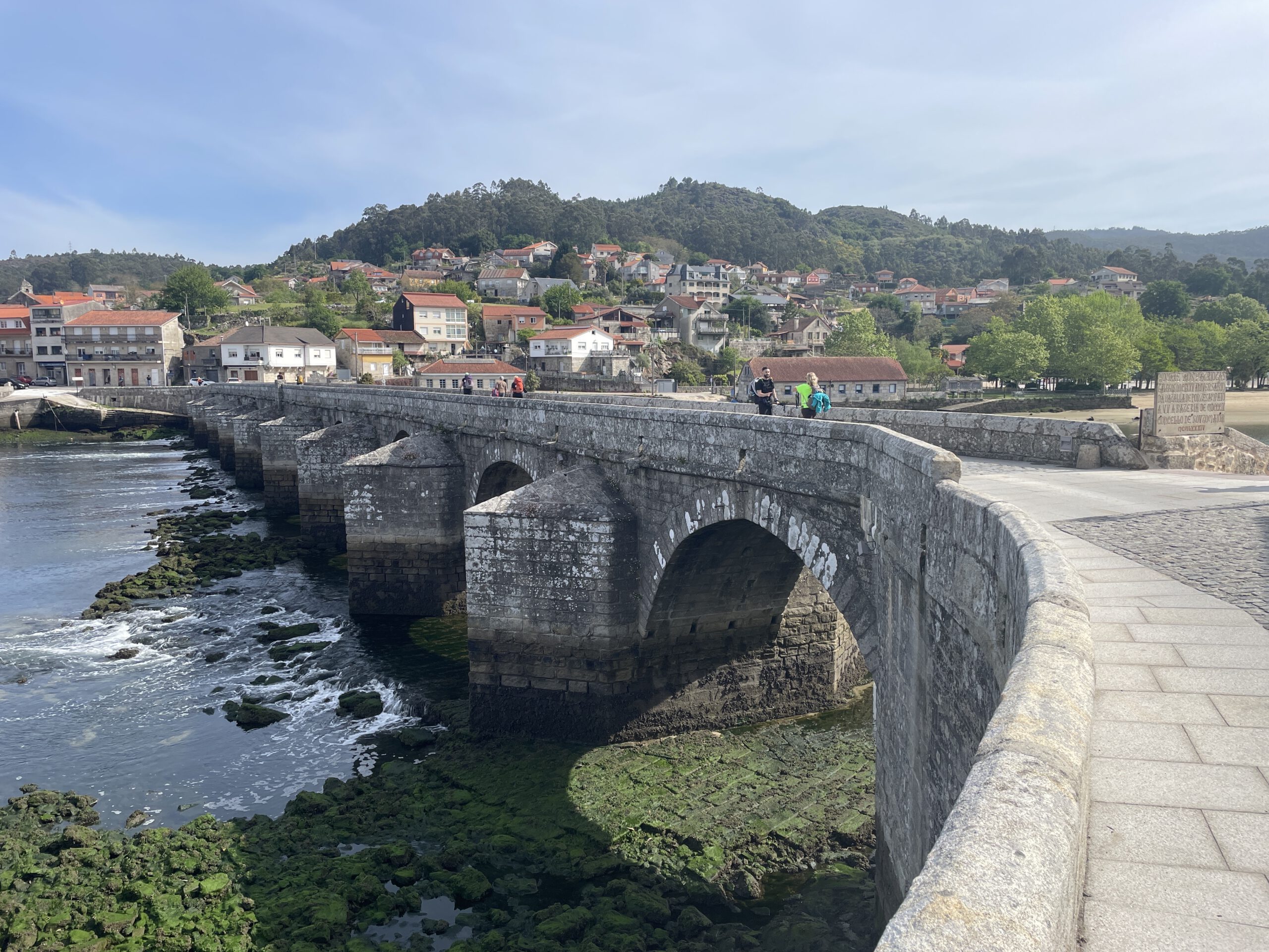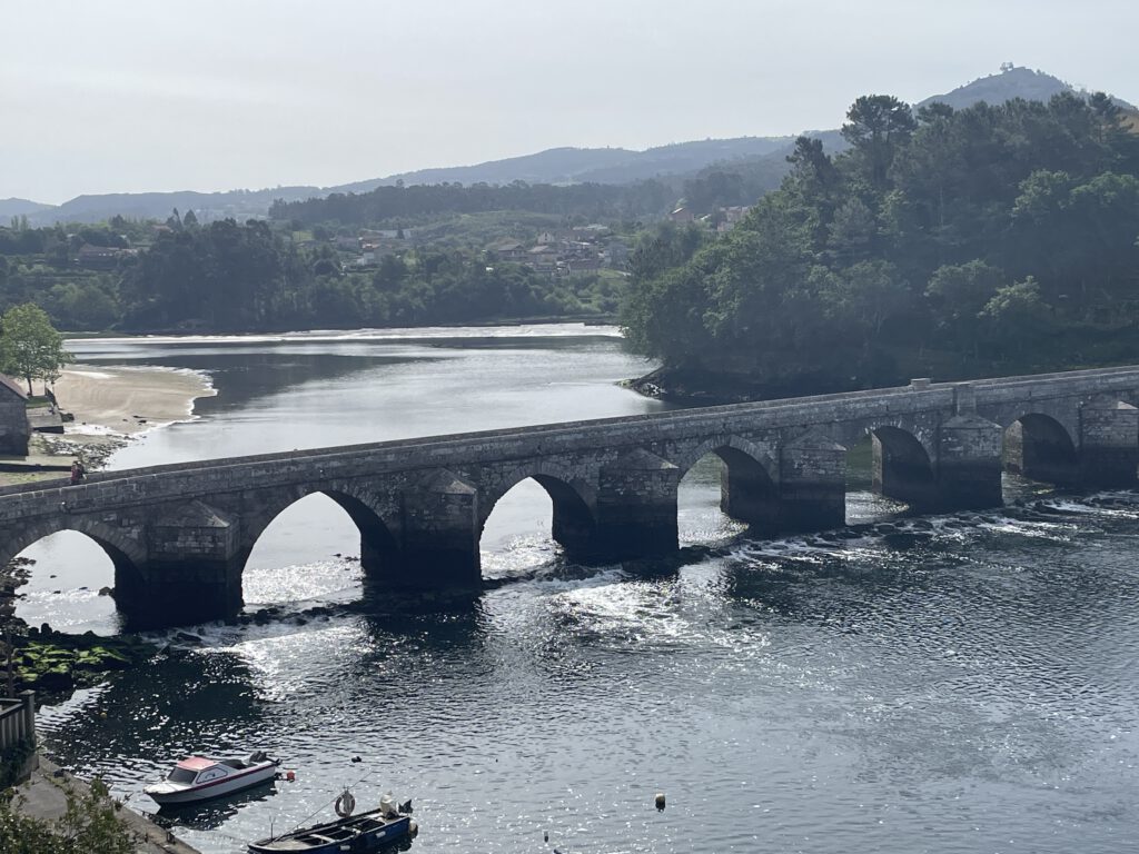 Diesmal kein Treffen mit Felix, aber mit sehr vielen anderen Menschen. Obwohl am Meer entlang waren es seltsamerweise weniger Pilger als sonst, so mein Gefühl. Drei ältere Frauen aus dem Allgäu, dafür aber Wanderprofis, zwei Frauen, Mutter mit Tochter aus der Ukraine, die ein Wahnsinnsschritttempo drauf hatten. Das nutze ich immer um ein paar Kilometer schneller zu erledigen, waren aber auch sehr sympathisch. Dann hab ich zwei Damen (Alter zwischen 30 und 40)getroffen. Sie kamen aus Halberstung, so klein ist die Welt. Habe mich mit denen sehr angenehm unterhalten über Sinn und Motivation dieses Jakobsweges. Nach einer Trennung von circa 1 Stunde traf ich nur noch die eine von beiden an. Leider musste die andere aufgrund Kreislaufproblemen mit dem Auto weiterfahren. Ich habe meine Pausen so nach jeweils 5-6 km gemacht. Kurz vor Caminha hab ich mir einen Cappuccino gegönnt und dabei eine nächste Unterkunft recherchiert. Dabei hab ich gemerkt, dass ich zu spät dran war und leider nicht mehr die große Auswahl hatte. Gott sei Dank musste ich nicht in einen Schlafsaal🤗. In Caminha angekommen, habe ich kurz eingecheckt und anschließend ein Restaurant aufgesucht.Dabei fragte ich einen Polizisten.Der hatte eine ganz schöne Fahne, booh. Die Dame neben ihm hat mir dann aber ein sehr gutes Restaurant empfohlen, da war ich zwar einziger Gast, aber es war wirklich gut.