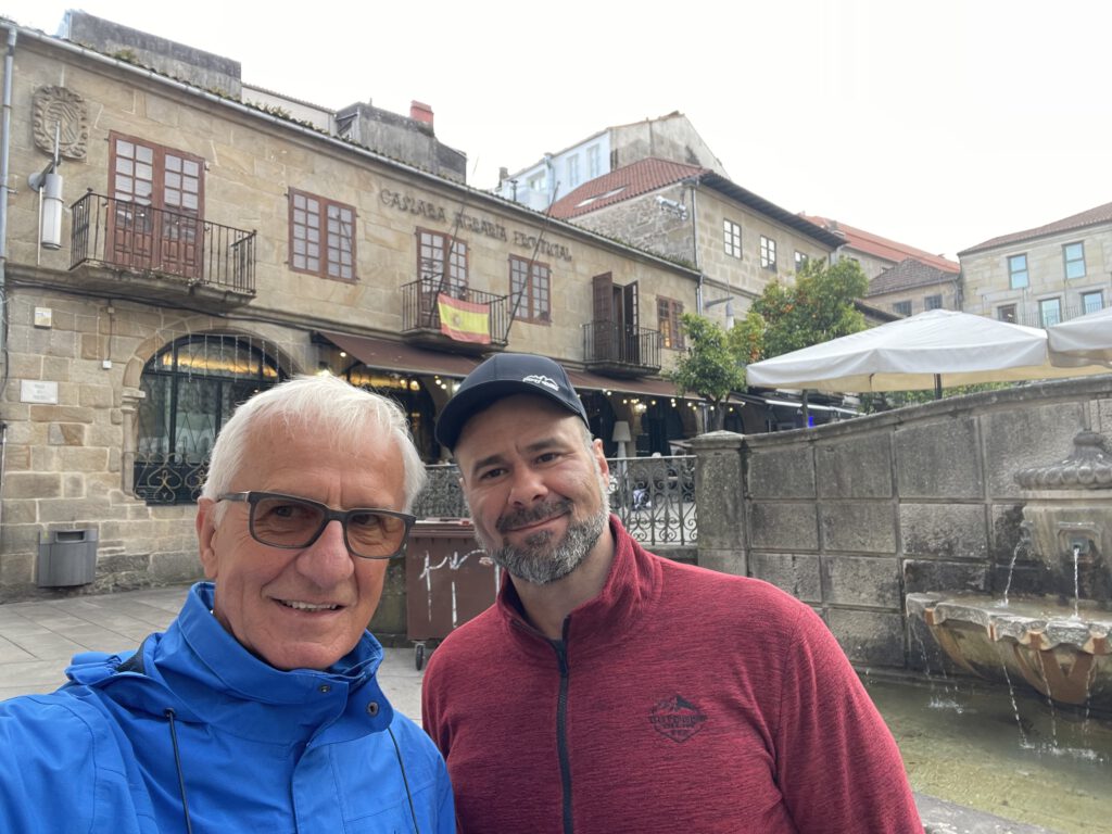 Valenca ist eine Reise wert, besonders wegen der Burg, die sich über das Stadt lang zieht, eigene Straßen, Häuser, Restaurants und Kirchen hat . Danach ging es weiter über die portugiesisch-spanische Grenze auf der Brücke nach TUI, auch eine schöne Stadt mit einem historischen Kern. Die weiteren Städte waren, Bartholomä, Orbenlle, Santo André und O Porrino, wo wir auch übernachten.
